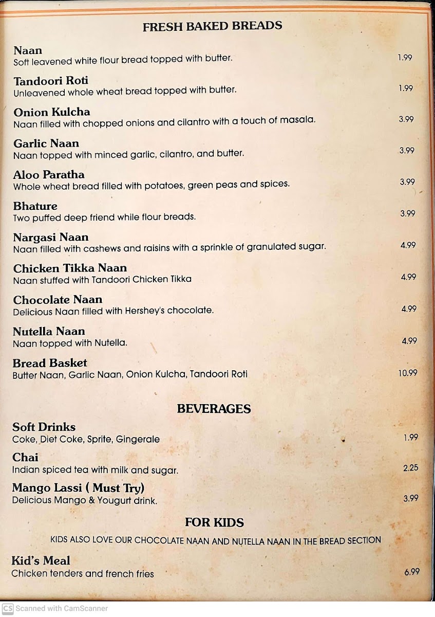 Kadhi: Choose from chicken, fish, paneer, seafood, shrimp, or vegetables. Spice levels available: extra hot, hot, medium, mild.